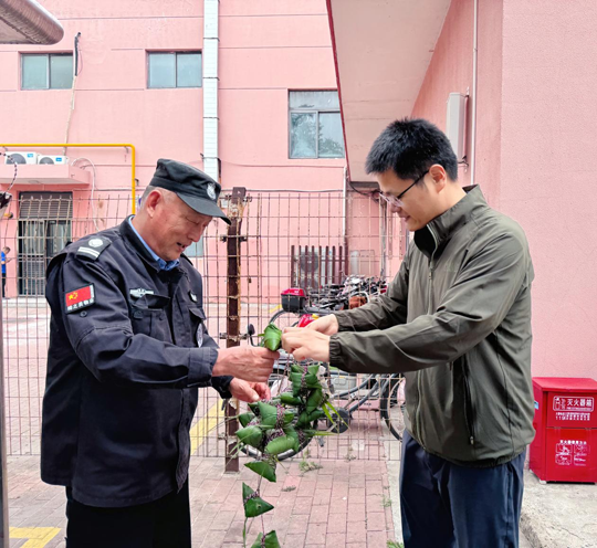 活動結束后,工作人員還第一時間將新出爐的熱粽子送到現(xiàn)場值班保安、保潔手中,傳遞節(jié)日關懷。