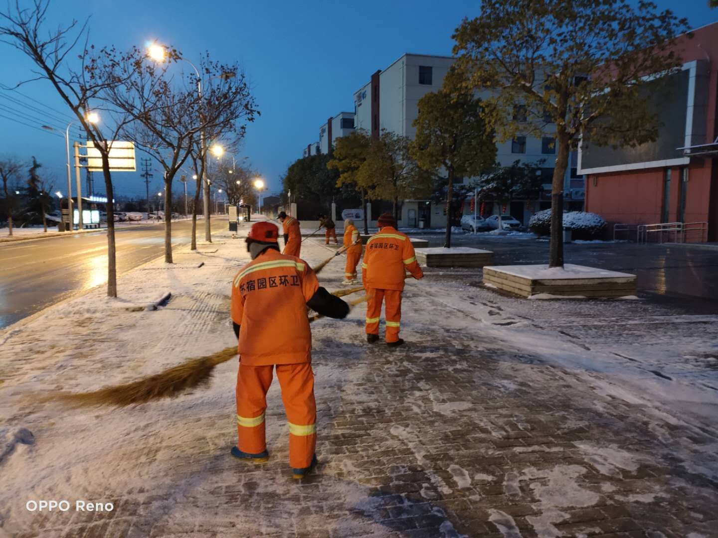 在園區(qū)公舍防疫值守的李佃左說(shuō)道:“雖說(shuō)疫情來(lái)了,但大家伙的心是牢牢團(tuán)結(jié)在一起的,這不一看下雪了,擔(dān)心復(fù)工人員上班時(shí)的出行安危,大家伙都忙活起來(lái)啦!”當(dāng)晚,建發(fā)公司員工、園區(qū)環(huán)衛(wèi)人員“相約”在轄區(qū)內(nèi)及園區(qū)道路街頭,在嚴(yán)寒中默默堅(jiān)守,與冰雪爭(zhēng)分奪秒,你鏟我掃、撒布融雪劑,井然有序,從容不亂,大家齊心協(xié)力、配合默契,為保障轄區(qū)內(nèi)通暢竭盡全力。在掃雪除冰的同時(shí),園區(qū)公舍集宿區(qū)工作人員仍然堅(jiān)守在執(zhí)勤點(diǎn)執(zhí)勤防控,有序做好各項(xiàng)疫情防控工作。