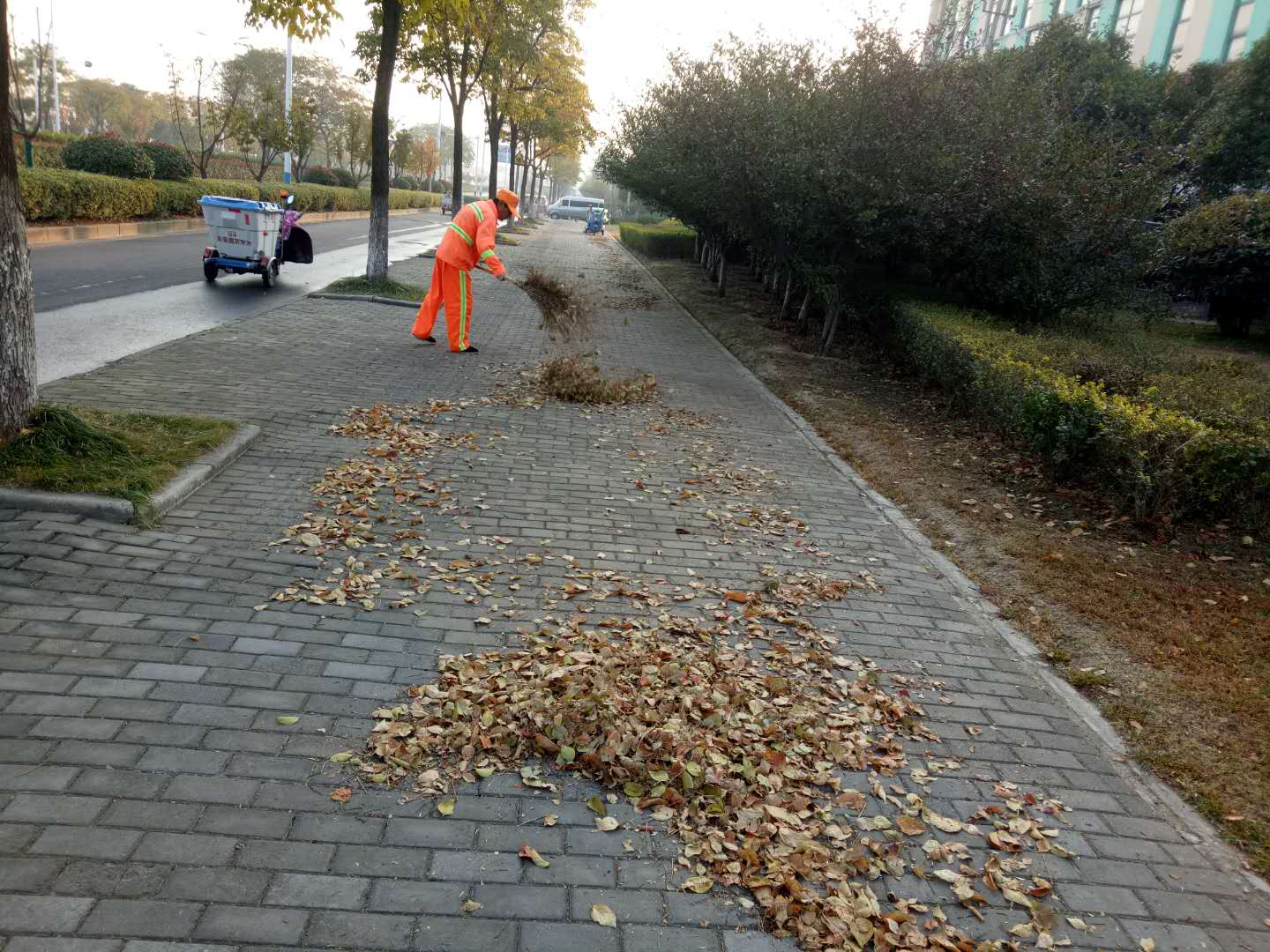 隨著氣溫下降,道路兩側(cè)的景觀(guān)樹(shù)植開(kāi)始大面積落葉,環(huán)衛(wèi)工人再次迎來(lái)一年一度落葉清掃“攻堅(jiān)戰(zhàn)”,為了及時(shí)清掃落葉,減少落葉堆積,公司迅速啟動(dòng)清掃預(yù)案,加大對(duì)園區(qū)道路落葉清掃保潔力度。