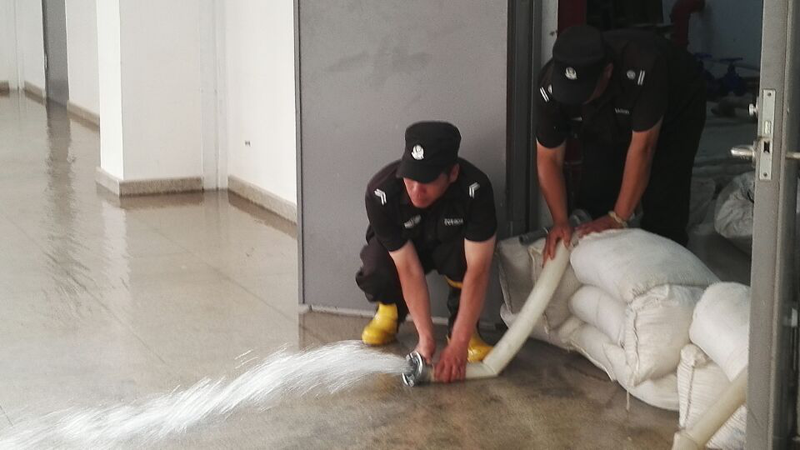 本次演練主要結(jié)合項(xiàng)目實(shí)際情況,在突發(fā)暴雨災(zāi)害發(fā)生時(shí),重點(diǎn)針對(duì)校園設(shè)備機(jī)房等重點(diǎn)區(qū)域,設(shè)置警戒,快速疏散現(xiàn)場(chǎng)人員及車輛,作利用防汛工具緊急排險(xiǎn),有效排除現(xiàn)場(chǎng)積水。