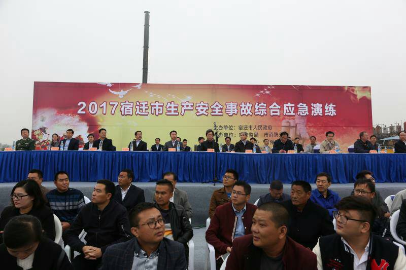 10月17日上午10時,2017宿遷市生產(chǎn)安全事故綜合應(yīng)急救援演練活動在宿遷生態(tài)化工科技產(chǎn)業(yè)園隆重舉行。此次活動由宿遷市人民政府主辦,市安監(jiān)局、市消防支隊、市應(yīng)急辦、宿豫區(qū)人民政府承辦。省安監(jiān)局副局長趙啟鳳,省政府總值班室副主任薛廣建,市委副書記、市長王天琦,現(xiàn)場觀摩演練。市直有關(guān)單位,以及各縣、區(qū),市各開發(fā)區(qū)、新區(qū)、園區(qū)相關(guān)負責(zé)人現(xiàn)場觀摩演練。