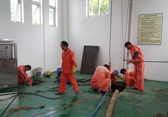 本次維護(hù)重點(diǎn)工作是泵站清淤及潛水泵檢查維護(hù)。經(jīng)過長期運(yùn)行,污水泵室及管道內(nèi)積聚了大量污泥、雜物,造成淤積,影響污水泵的正常運(yùn)行。為了確保污水正常流入泵室,每半年將組織清淤一次。同時,對3臺潛水泵進(jìn)行檢查,補(bǔ)充黃油,確保3臺泵都能正常運(yùn)行。
